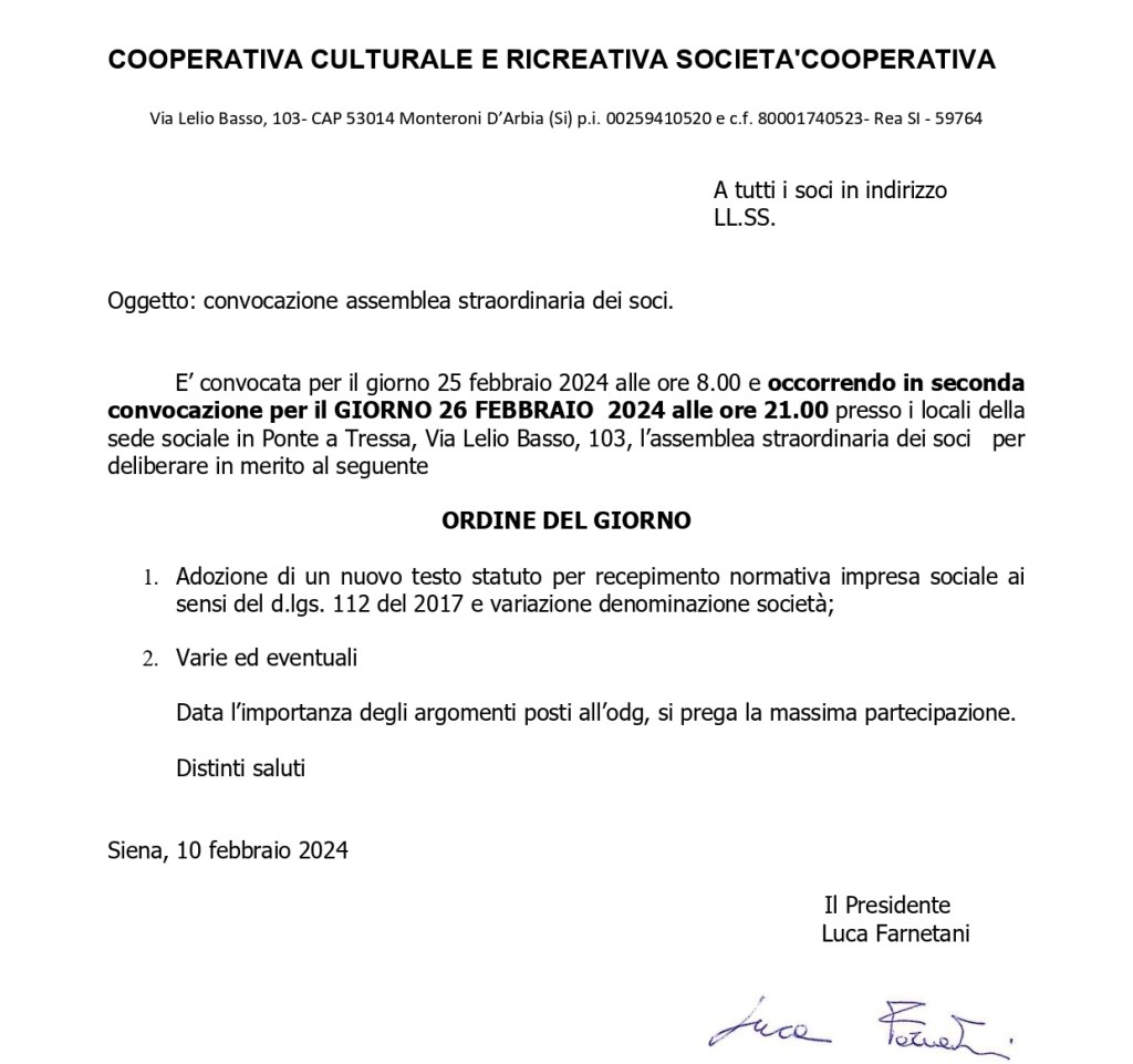 Convocazione Assemblea Straordinaria dei Soci