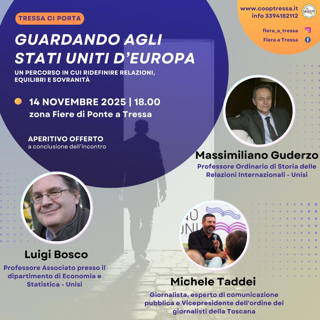 Guardando agli Stati Uniti d’Europa: un percorso in cui ridefiniamo relazioni, equilibri e sovranità Con Luigi Bosco, Massimiliano Guderzo e Michele Taddei. Vi aspettiamo venerdì 14 novembre alle 18:00 per discutere di aspetti salienti riguardanti gli Stati Uniti d’Europa, tra valori ideologici e una realtà e contesto geopolitico in continuo mutamento con cui confrontarci!